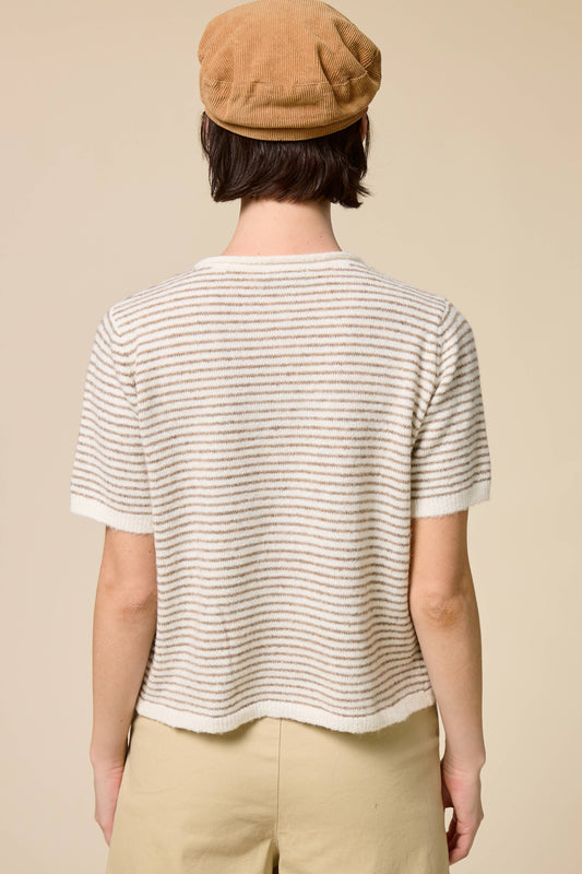 Palmer Striped Short Sleeve Cardigan | Taupe